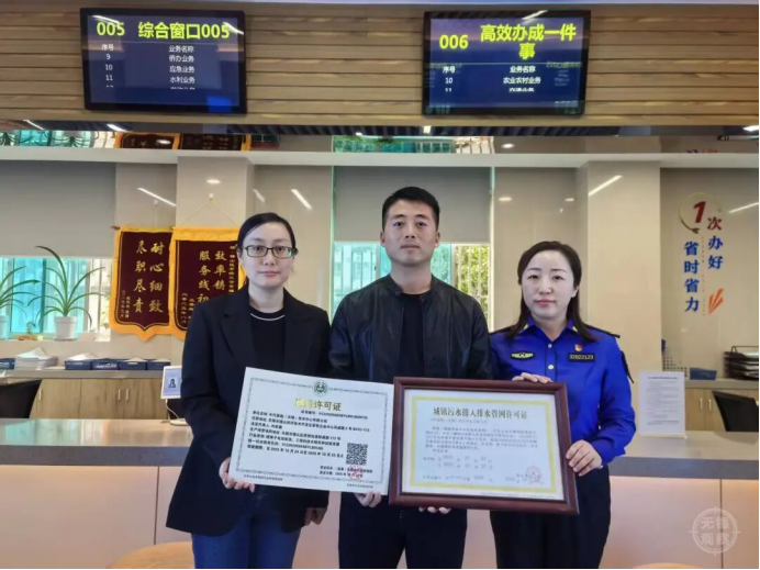 當(dāng)天下午,在錫山區(qū)政務(wù)服務(wù)大廳,中汽新能安環(huán)部負(fù)責(zé)人張家智從錫山生態(tài)環(huán)境局與錫山區(qū)城管局工作人員手中,同時(shí)接過嶄新的《排污許可證》和《城鎮(zhèn)污水排入排水管網(wǎng)許可證》,喜悅之情溢于言表。“沒想到這么快就辦妥了!”張家智表示,公司主要從事新能源汽車電池研發(fā),目前正處于小試線和中試線調(diào)試階段,“兩張?jiān)S可證的同步獲取,為接下來的正式生產(chǎn)鋪平了道路。”