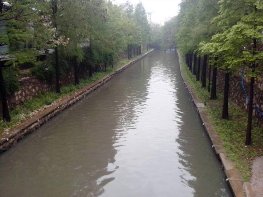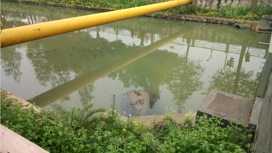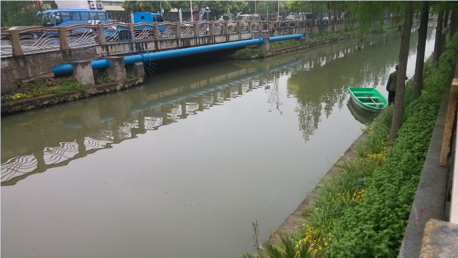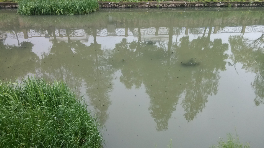 運河北路橋北面 水體呈灰綠色