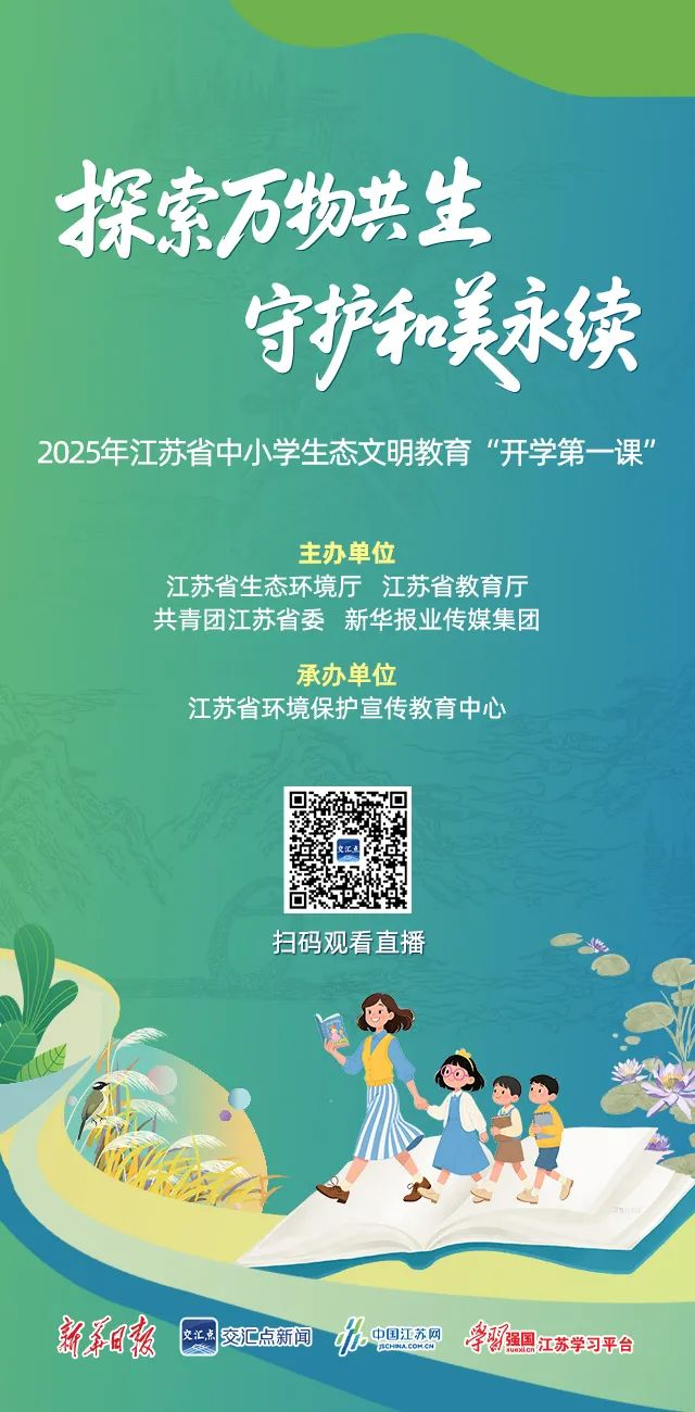 “探索萬物共生,守護(hù)和美永續(xù)——2025年江蘇省中小學(xué)生態(tài)文明教育‘開學(xué)第一課’”將于8月21日上午8點(diǎn)30分正式開講!